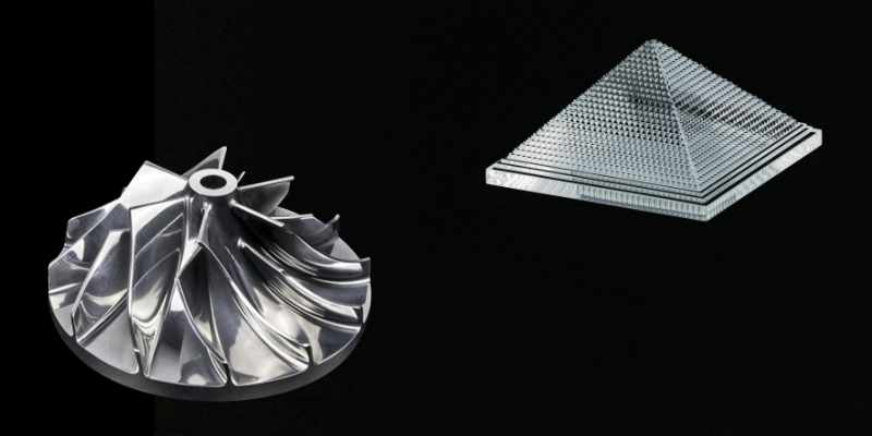 Maximum precision for complex geometries in plastic and metal up to a minimum milling radius of R 0.15 mm – R 0.10 mm